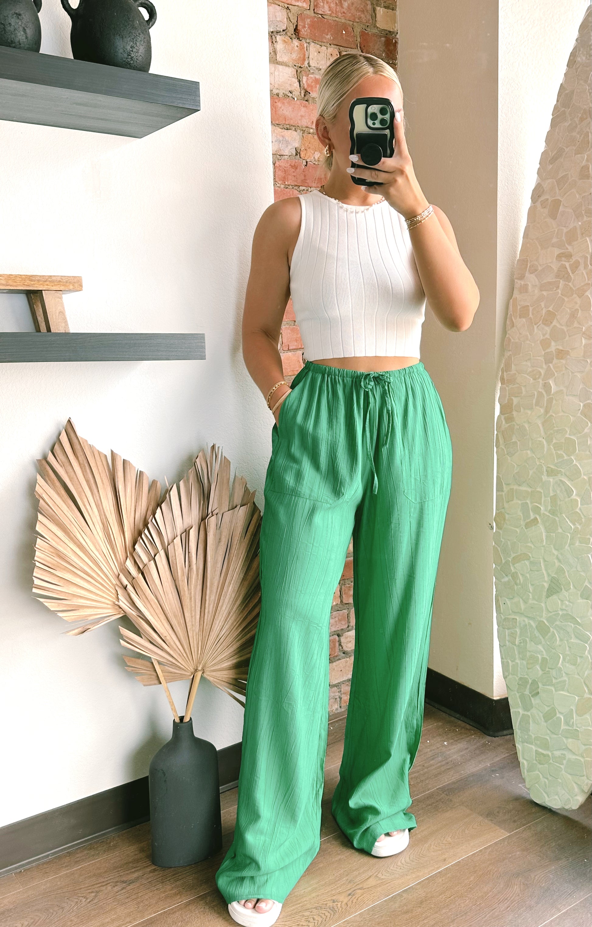 Sara Linen Blend Pants- Green